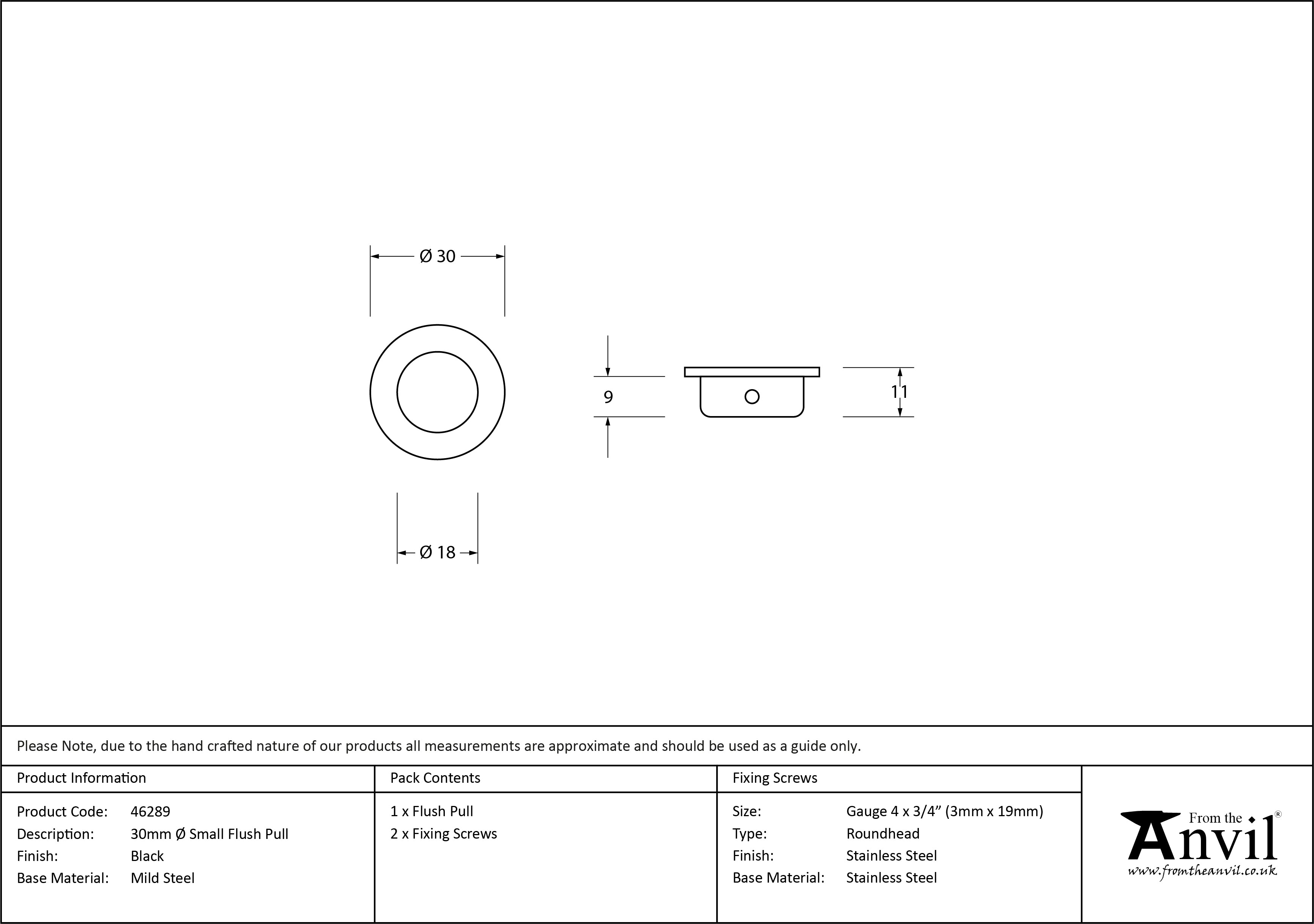 Black 30mm dia Small Flush Pull