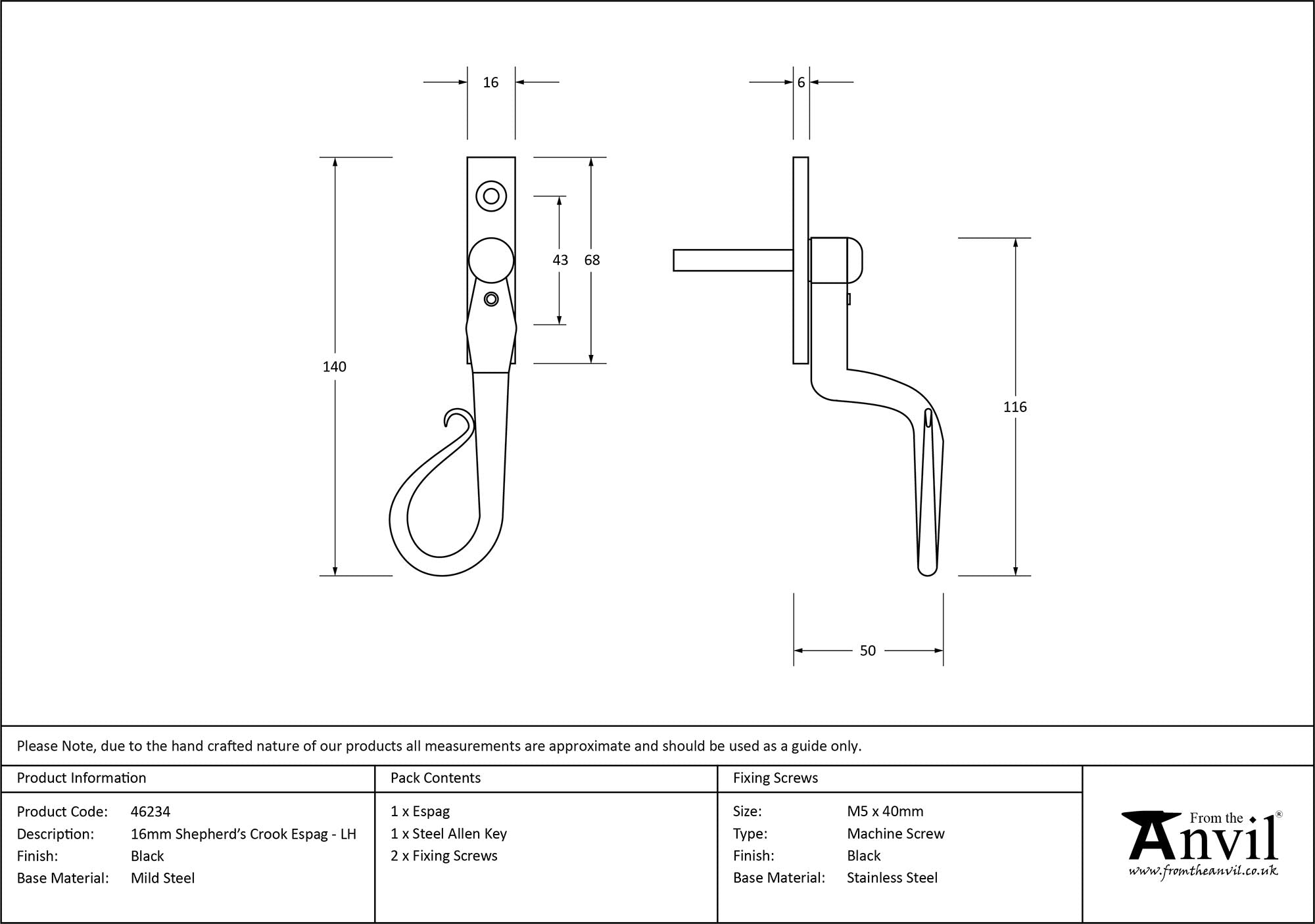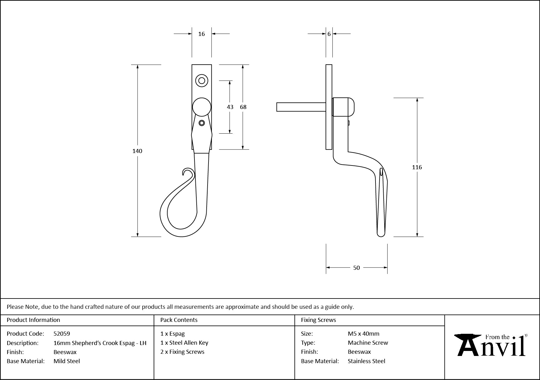 16mm Shepherd's Crook Espag
