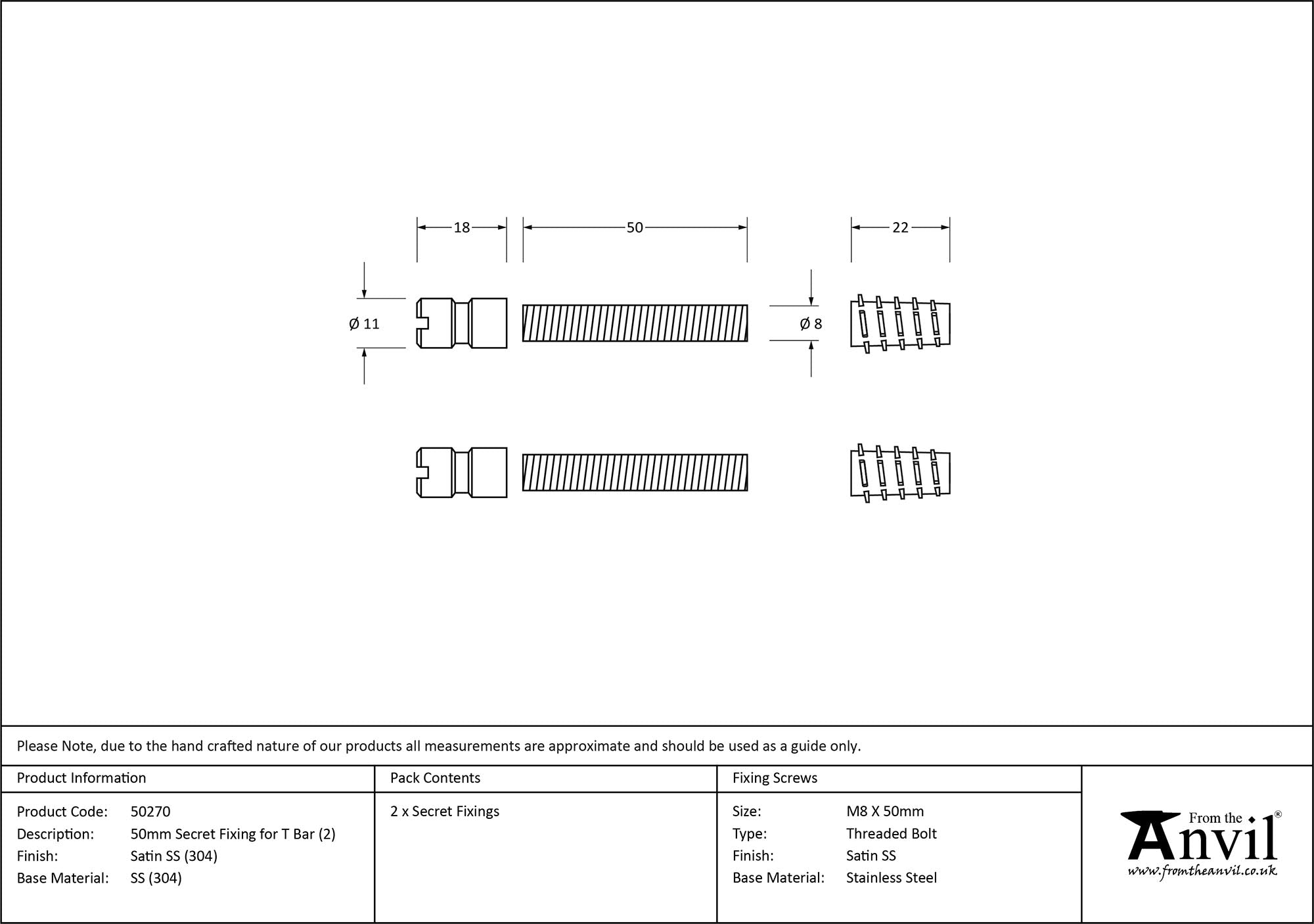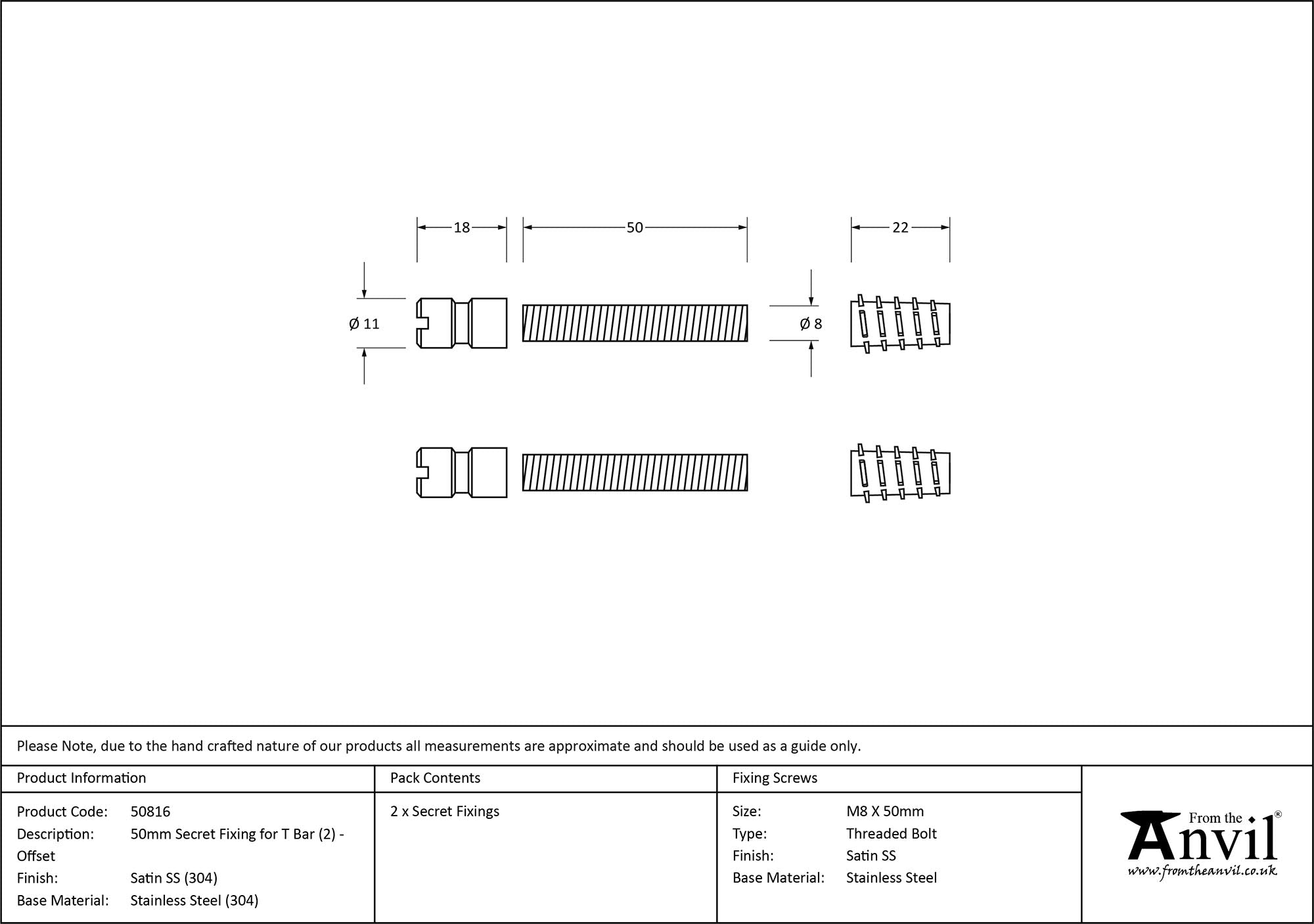 (304) 50mm Secret Fixings for T Bar (2) - Offset