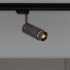 A track spotlight made from graphite powder coated metal with solid steel detailing.