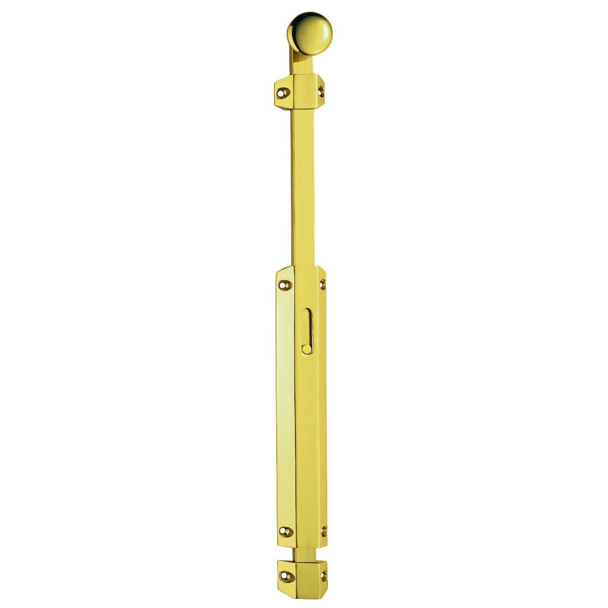 Surface mounted door bolt with an extended handle. The longer handled extension allows easier use for those low or higher fittings where a conventional sized bolt would make reaching awkward. Smooth operation, integral ball and spring mechanism for positive location of the bolt when closed. Comes with a selection of three strikes for use with inward and outward opening doors ensuring versatility in various applications.Flat sliding barrel offering more security than a conventional barrel bolt. Extended version of the standard surface bolt. Handle extends to 355mm total. Comes with a 10 year mechanical guarantee. Provides extra home security fpr peace of mind