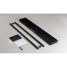 They work great on interior glass or solid doors with a minimum of 10mm thickness and a maximum of 60mm thickness. Not intended for use in wet environments. Included in the box is two closet bars with double-sided fixings.