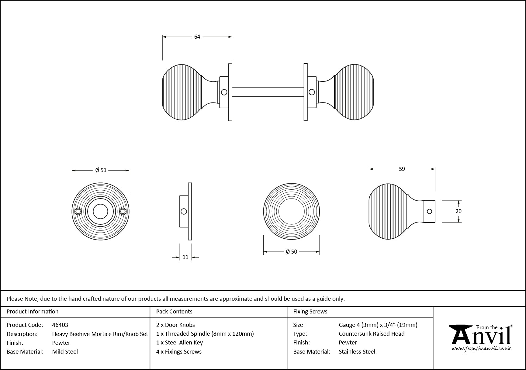 Heavy Beehive Mortice/Rim Knob Set