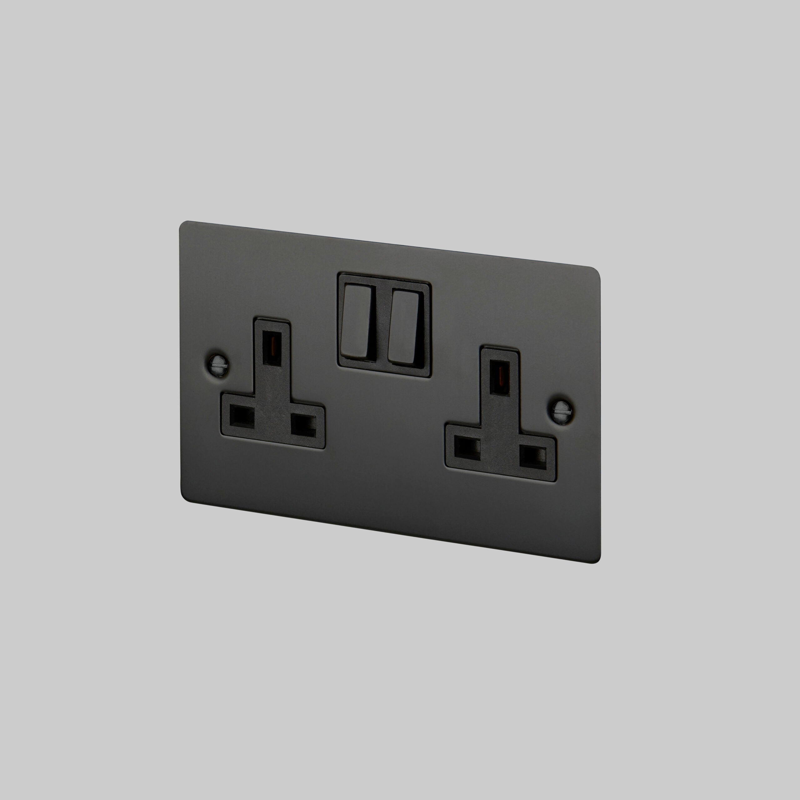 A double UK plug socket made from solid metal and finished to match our toggle switches, dimmers and euro plates.