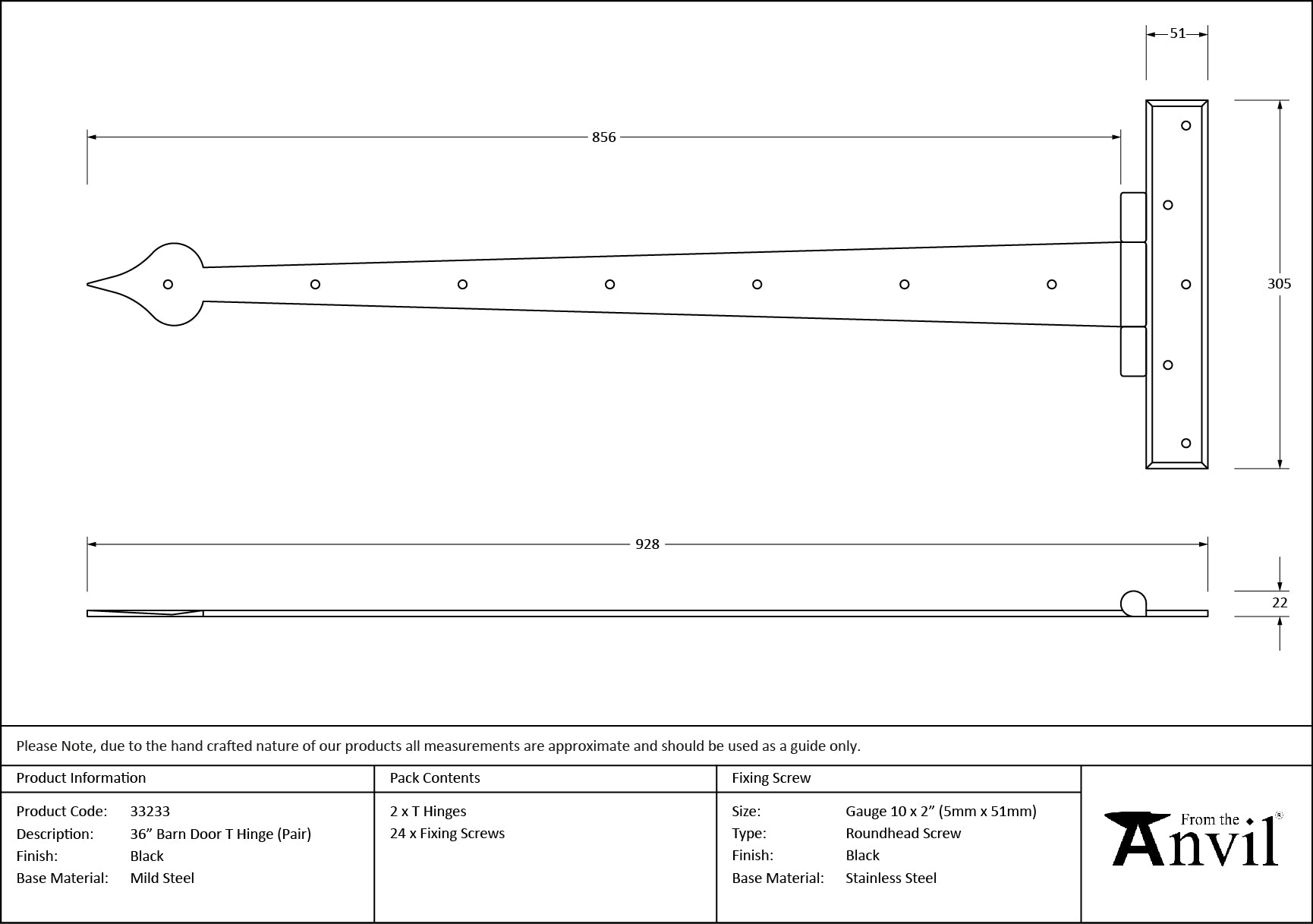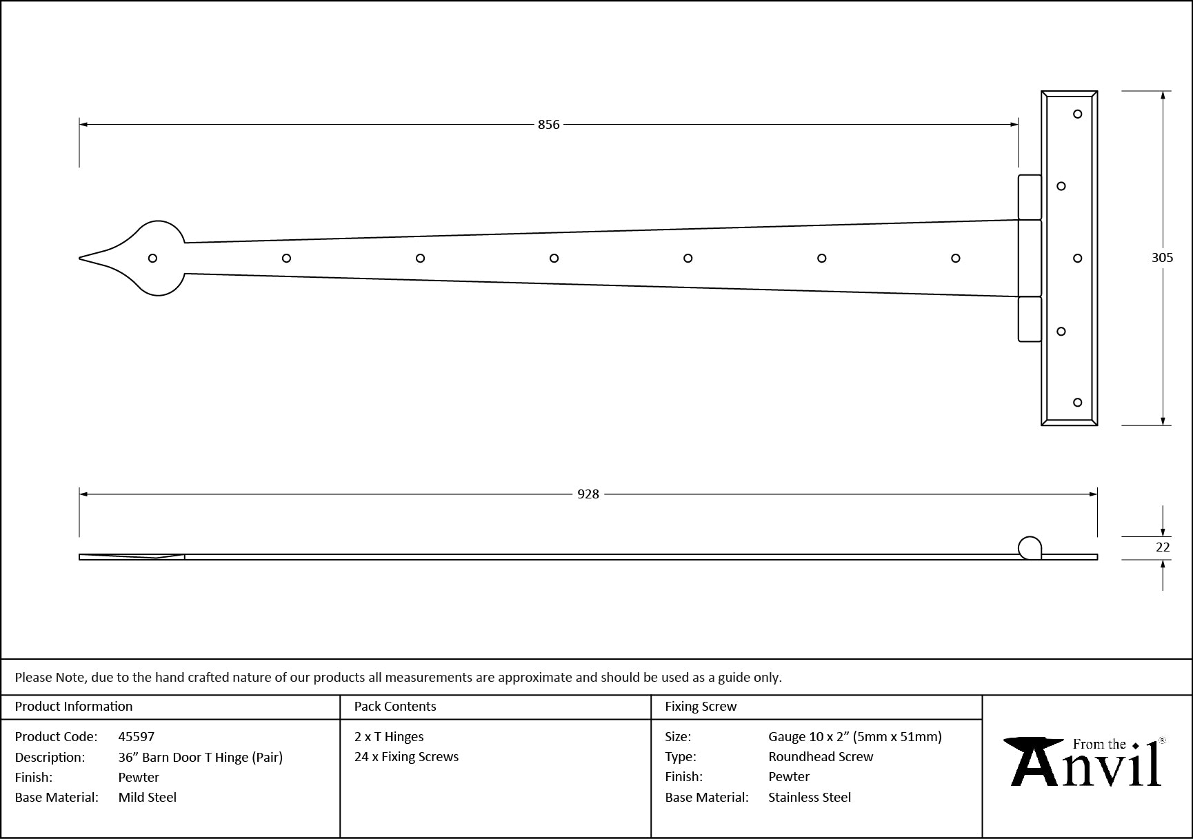 Barn Door 36" T Hinge (pair)