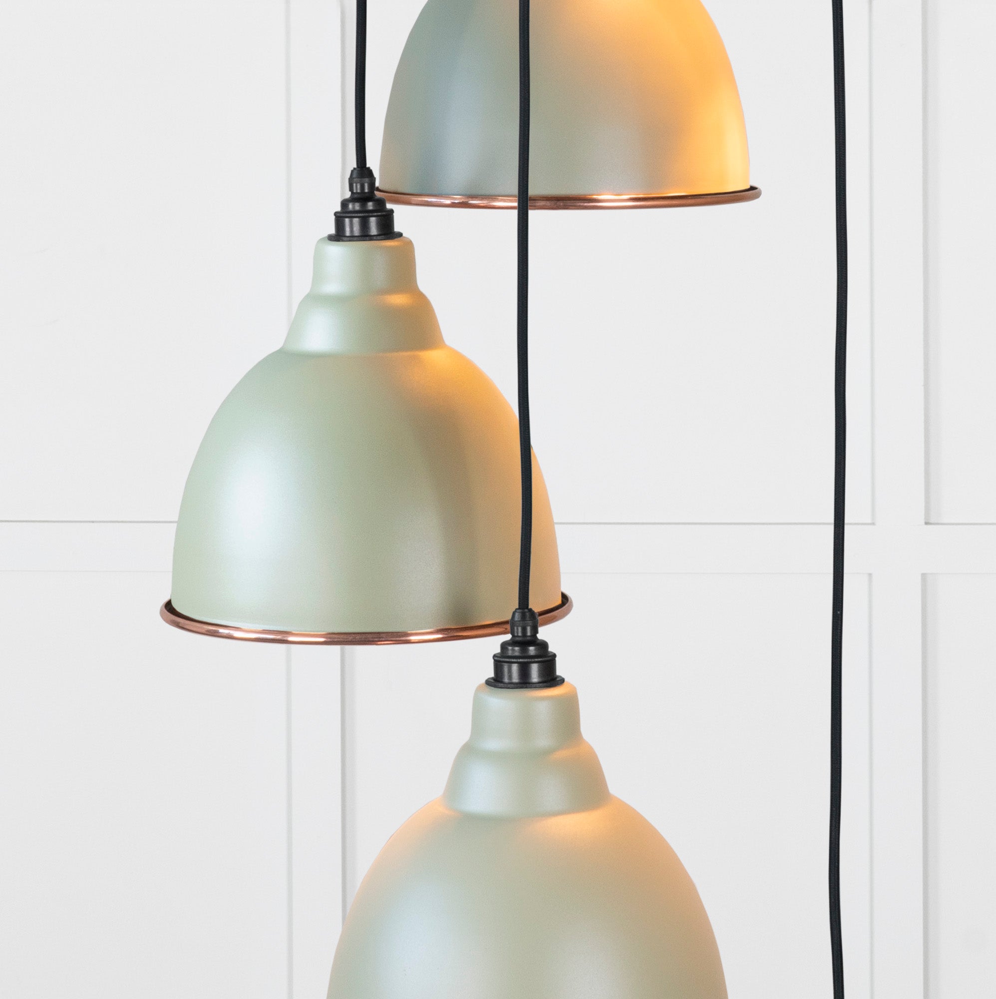 - Overall height (from top of ceiling rose to bottom of lowest pendant) 1.3m as standard, pendant heights can be bespokely altered to your preference if needed.