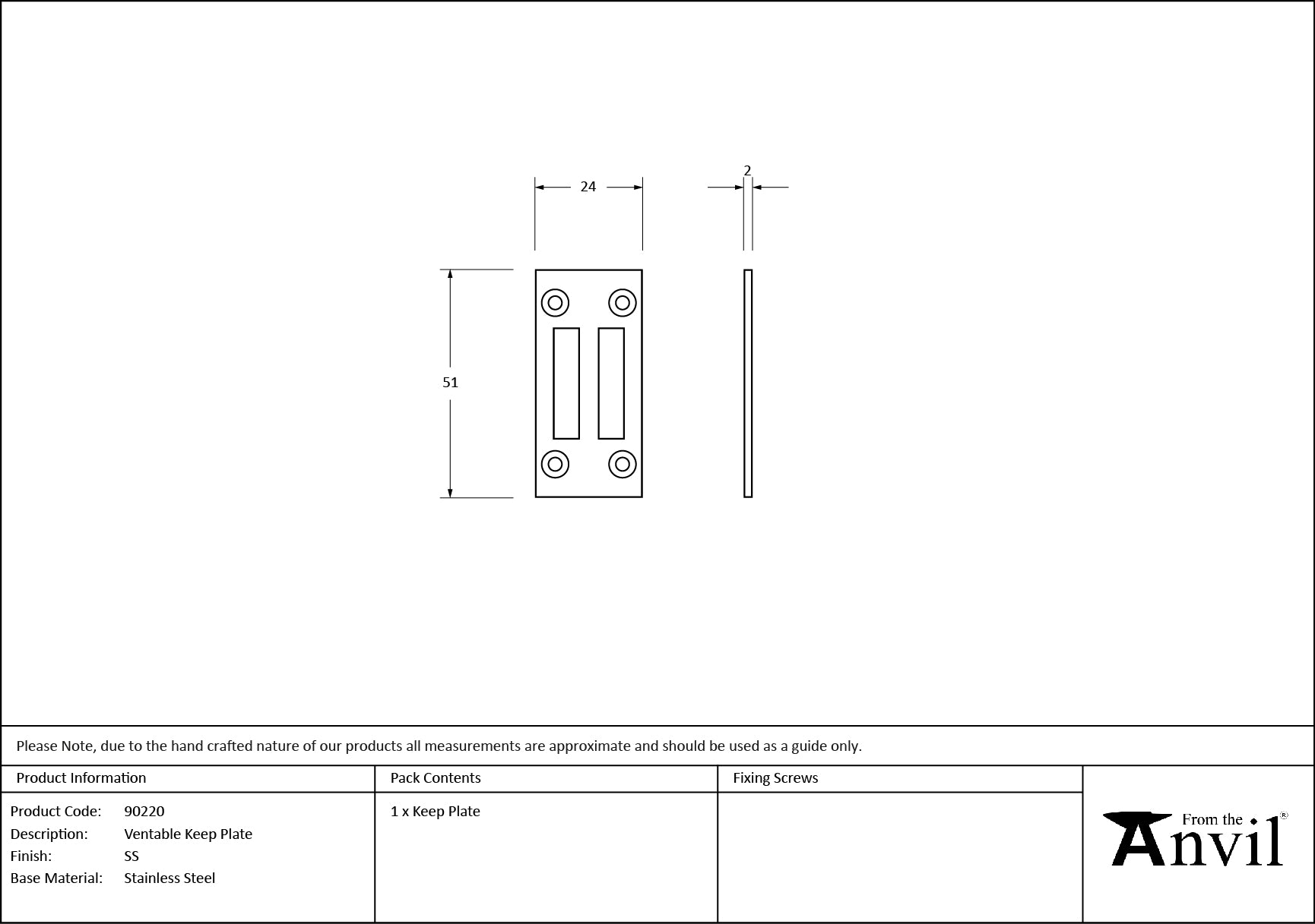 SS Ventable Keep Plate