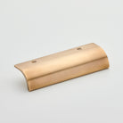 A solid brass, curved edge pull.