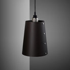 A wall light made from graphite powder coated metal with solid steel detailing.