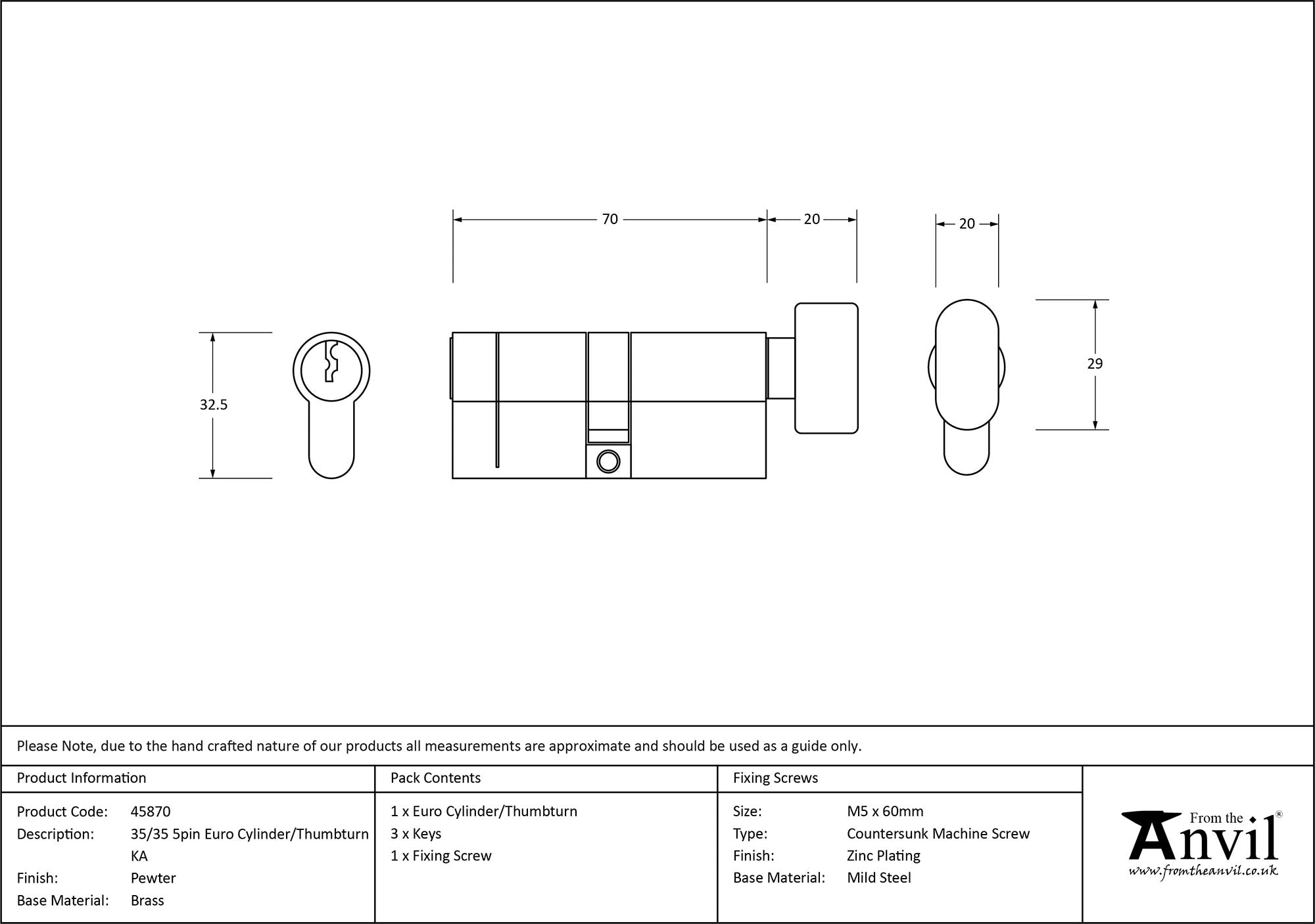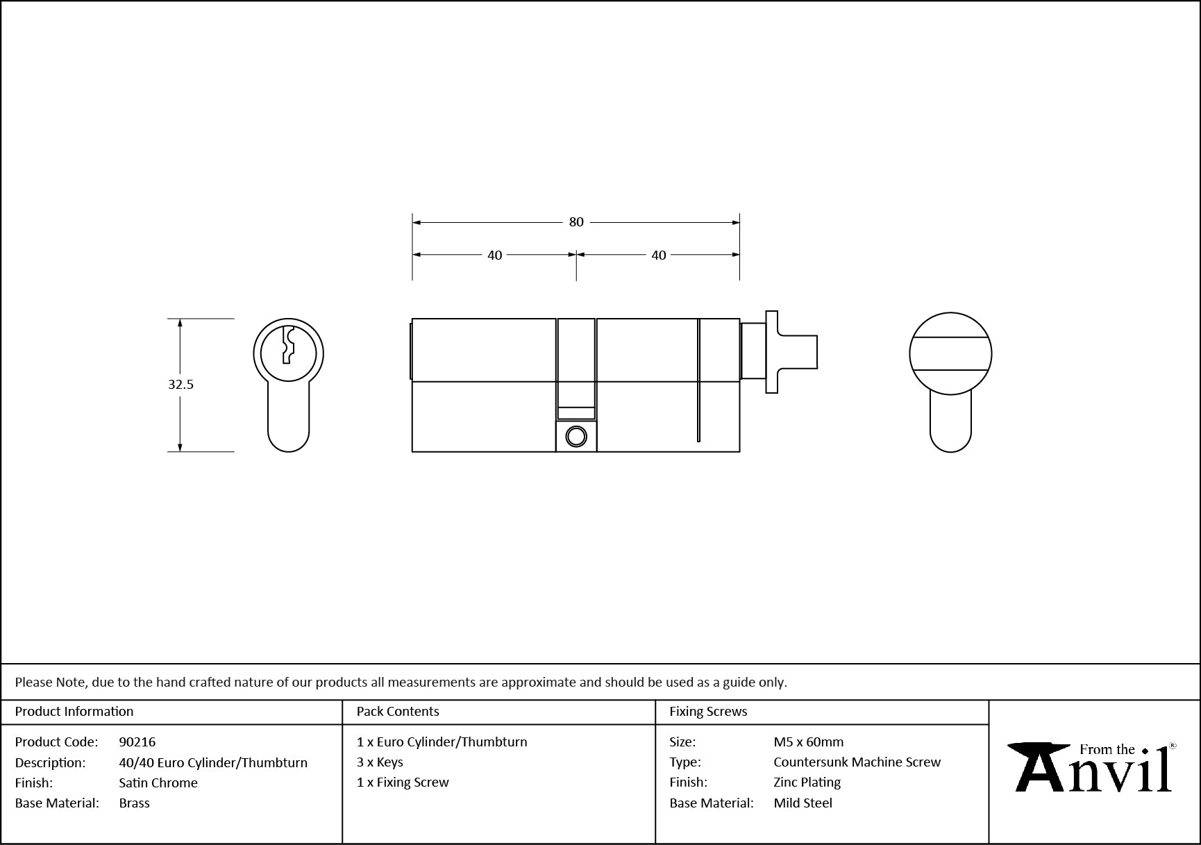 5 Pin Euro Cylinder/Thumbturn