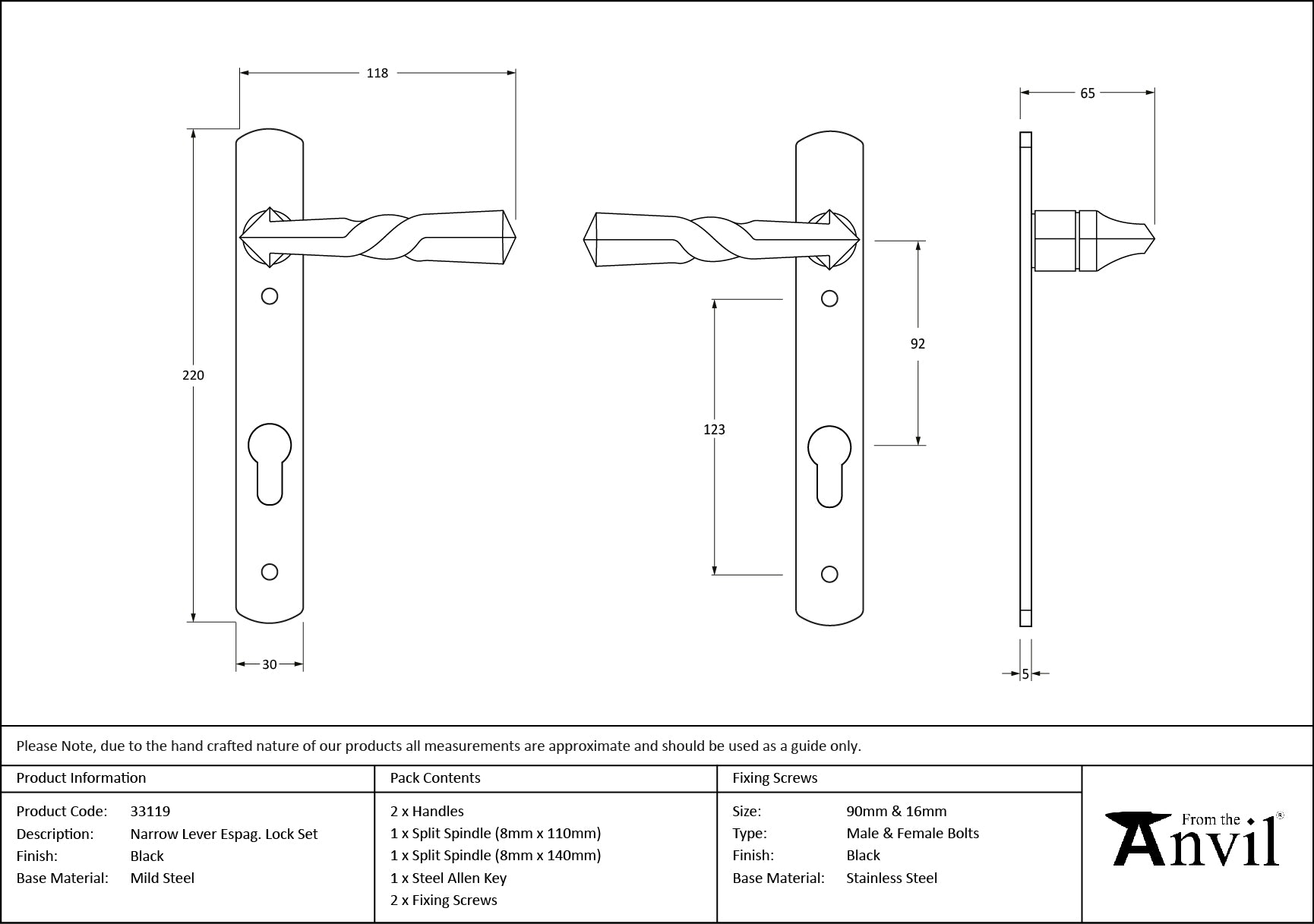 This Narrow lever features a stylish twist, hand forged by our skilled Blacksmiths.