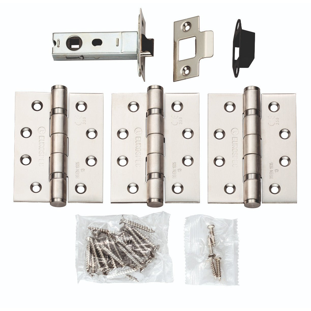Each pack contains a 3 inch Bolt through tubular latch & 1.5 pairs of grade 13, 4 inch ball bearing hinges.